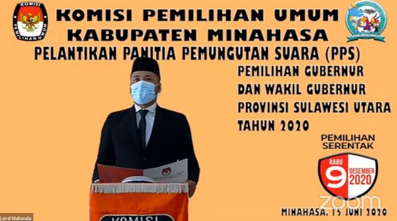 Pengambilan sumpah dan janji Anggota PPS untuk Pemilihan Kepala Daerah (Pilkada) Serentak Gubernur dan Wakil Gubernur Sulawesi Utara tahun 2020, yang diawali dengan pembacaan Surat Keputusan oleh Sekretaris KPU Minahasa Dr Meidy Malonda MPd ini, dilakukan melalui aplikasi Zoom live streaming, dimana semua undangan dan yang akan dilantik hanya dari rumah masing-masing.