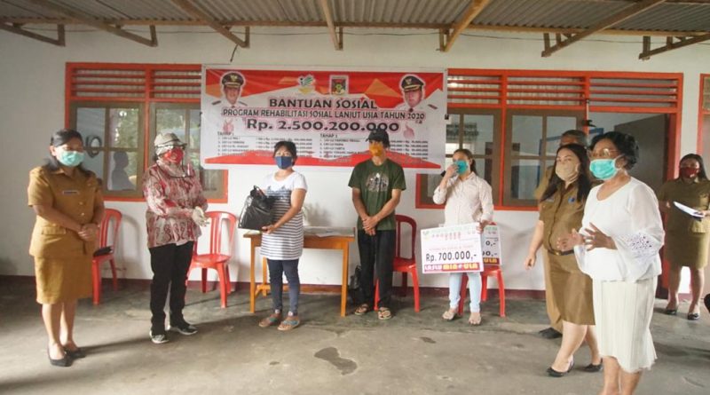 Minahasa – Ketua TP PKK Kabupaten Minahasa Dra. Fenny Ch Roring Lumanauw, SIP Bersama Pemerintah Kabupaten Minahasa Melalui Dinas Sosial Menyerahkan Secara Simbolis bantuan Program Rehabilitasi Sosial Lanjut Usia Tahun 2020, Senin 27 April 2020, Tempat Panti Sosial Tresna Werda INA I, Kelurahan Tounkuramber, Kecamatan Tondano Barat.