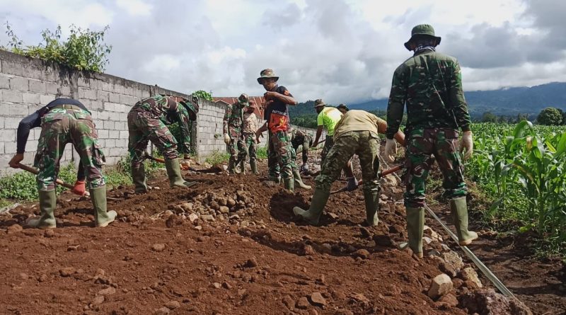 Forummedia.ID – Minahasa – dihari ke 10 kegiatan TNI Manunggal Membangun Desa (TMMD) Ke-108 Kodim 1302/Minahasa di Desa Tempang 3 kecamatan Lagowan Utara, personil satgas TMMD nampak tetap bersemangat.