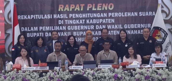 forummedia.id, Minahasa – Rapat Pleno lanjutan penghitungan suara, Komisi Pemilihan Umum (KPU) Minahasa menyelesaikan rekapitulasi penghitungan suara di 25 Kecamatan