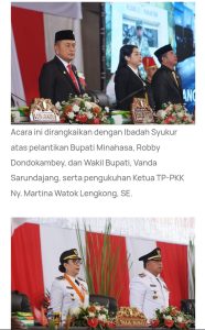 Ia menegaskan bahwa dirinya dan Wakil Bupati hadir bukan hanya sebagai pemimpin, tetapi sebagai pelayan bagi rakyat Minahasa. “Kami akan bekerja keras, merangkul semua golongan, dan memastikan pembangunan serta kesejahteraan menjadi prioritas utama,” tegas Robby.