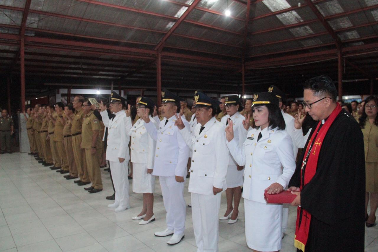 ”Atas nama Bupati , Royke O. Roring, MSi, IPU, Asean. Eng dan Wakil Bupati Minahasa Robby Dondokambey, SSi mengucapkan selamat dan kiranya kepercayaan yang diberikan pimpinan dapat dipergunakan sebaik baiknya dalam menjalankan tugas dan pekerjaan dengan disiplin,” Kata Sekda Muntu.